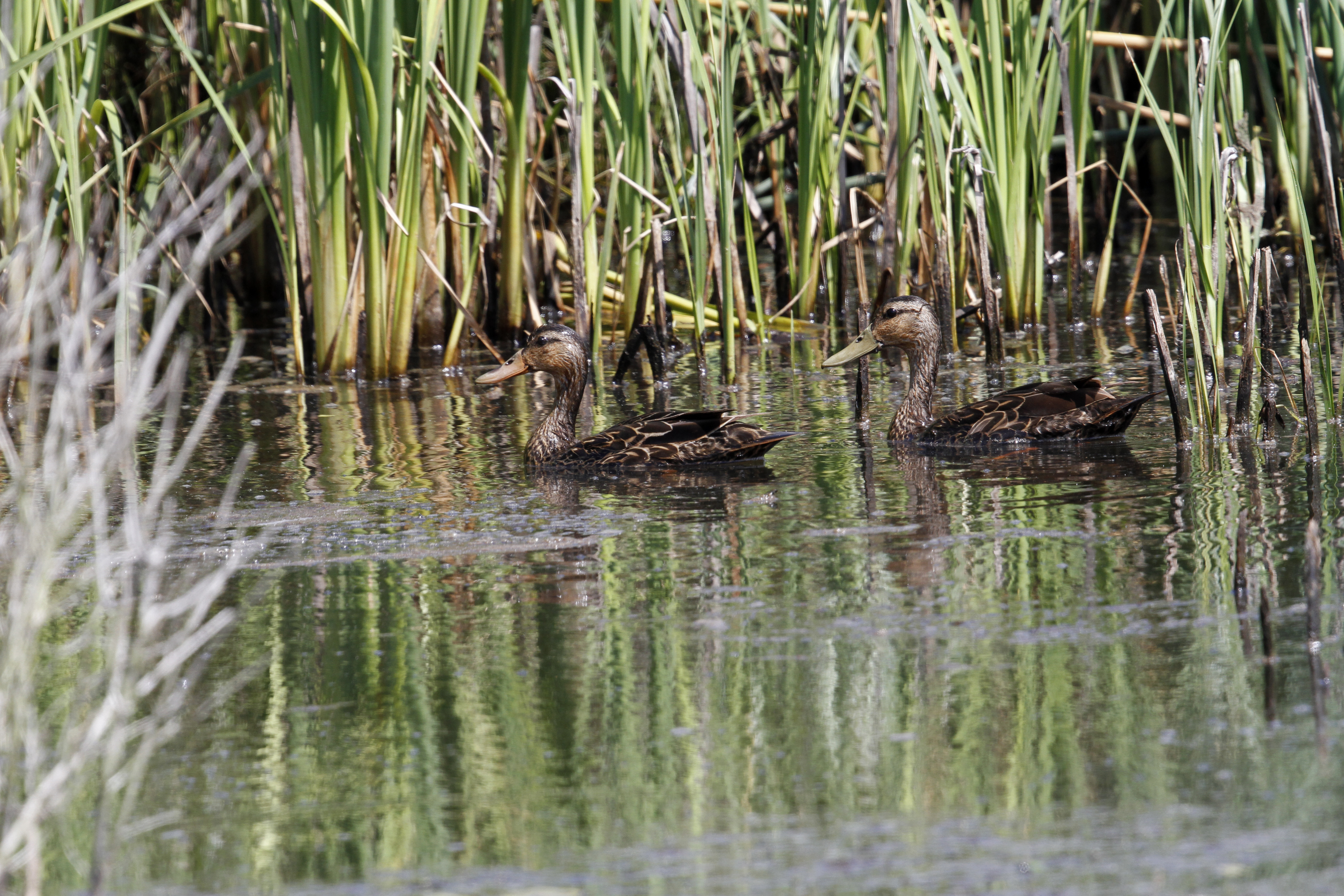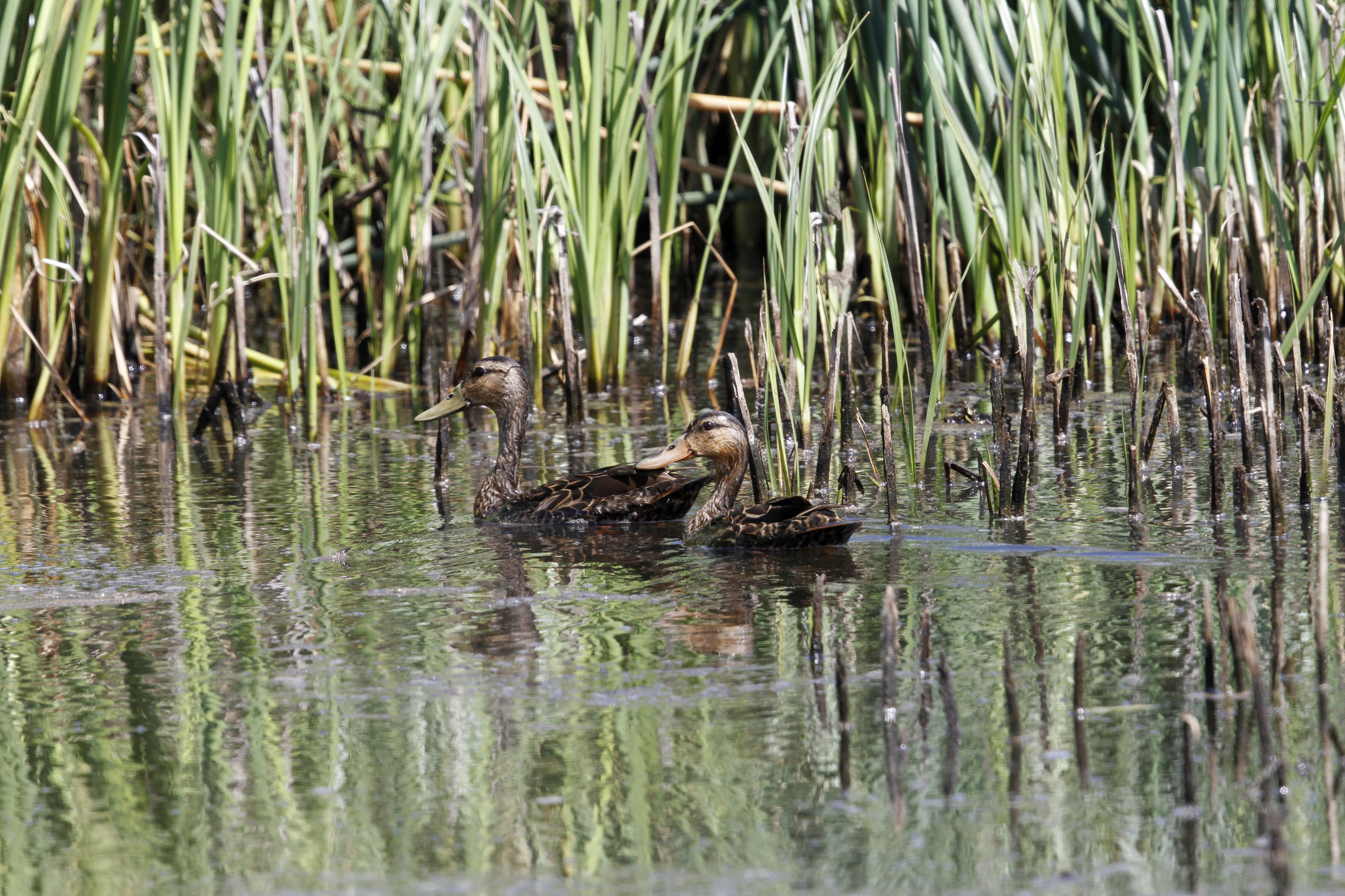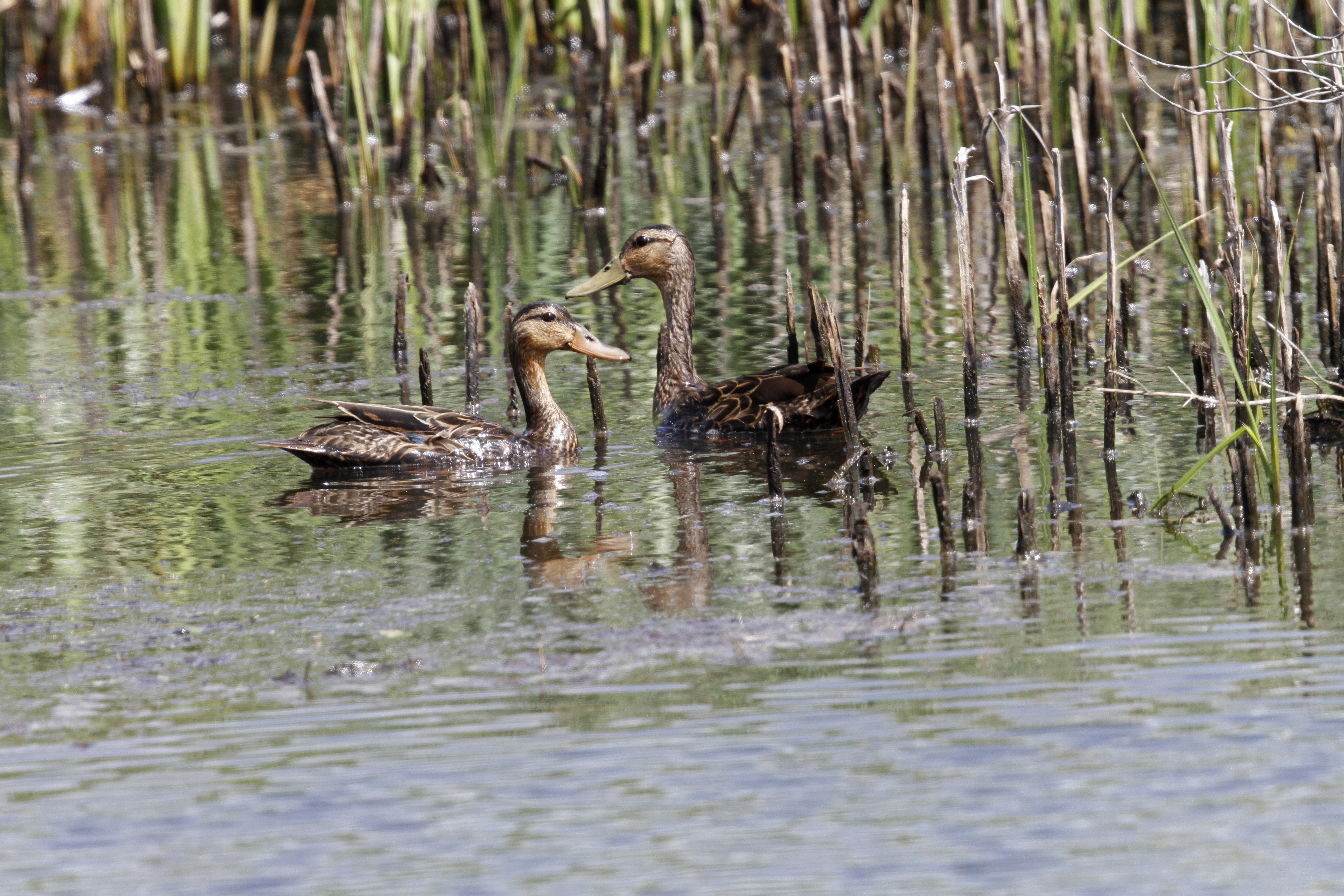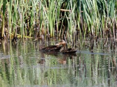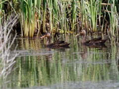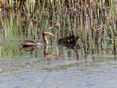 Mottled Duck drake (Anas fulvigula).Mottled Duck (Anas fulvigula). Pair -- hen is to the left.Mottled Duck (Anas fulvigula). Pair -- hen is to the right.Mottled Duck (Anas fulvigula). Pair -- hen is to the left. Mallards in FlightNorthern Pintail