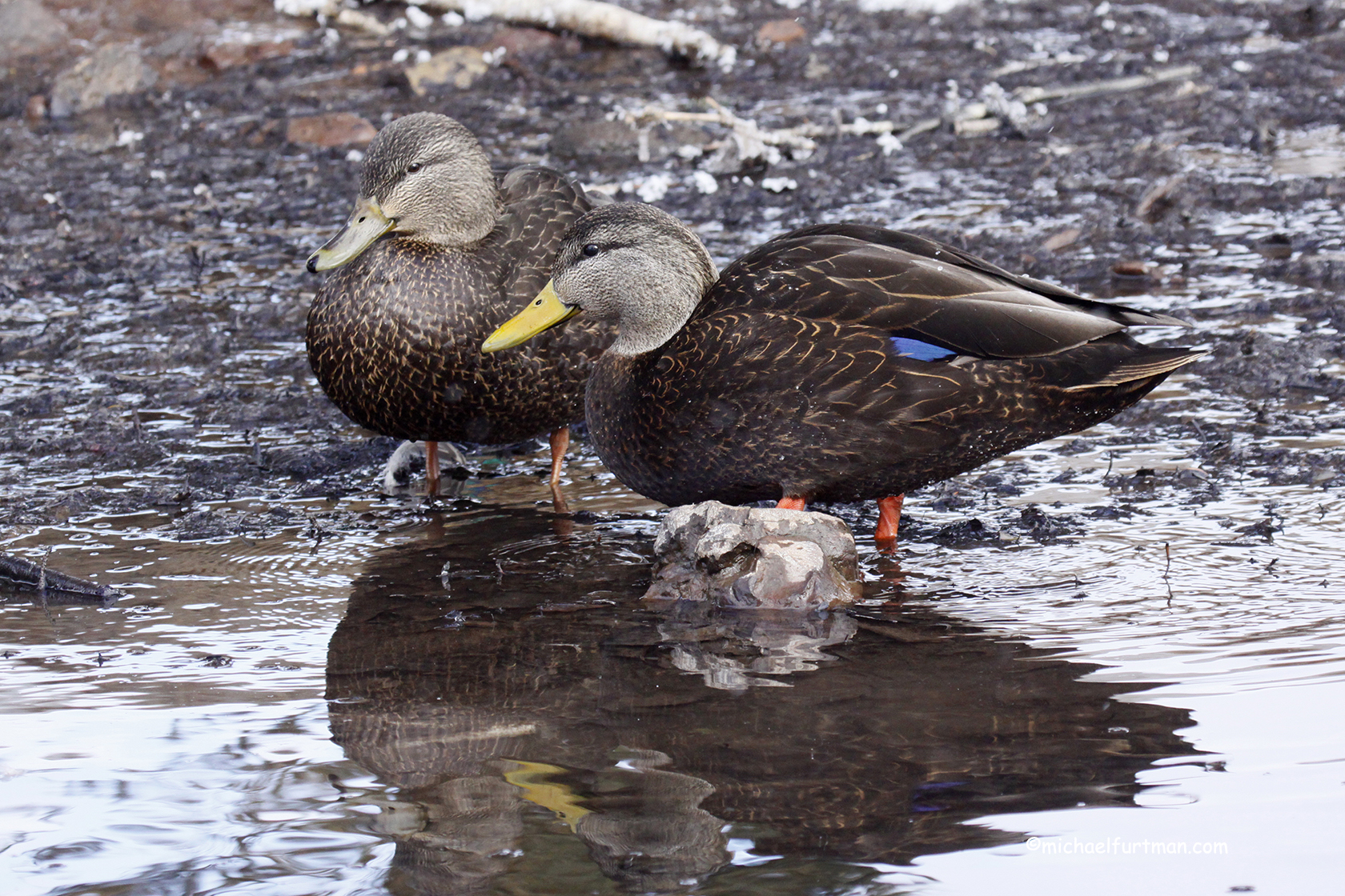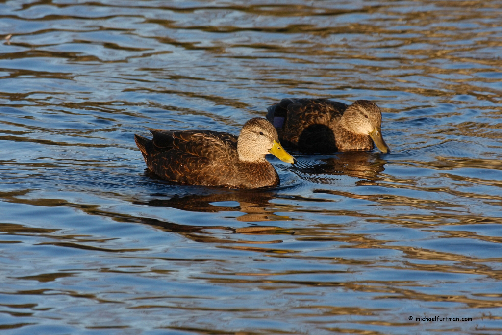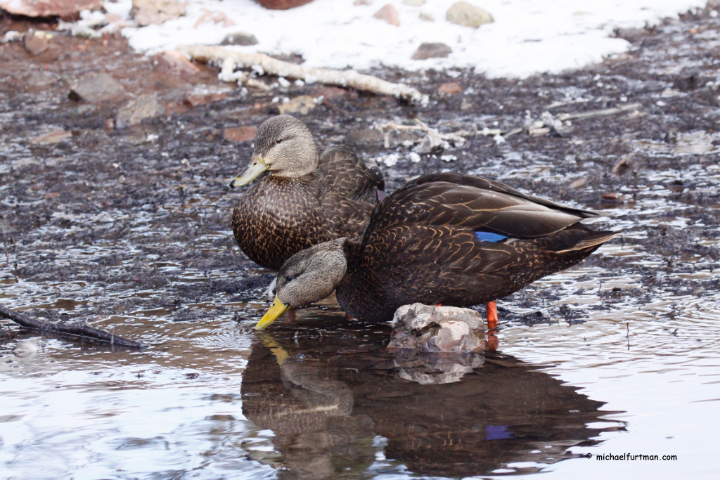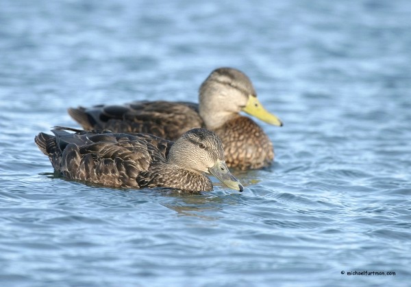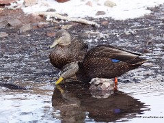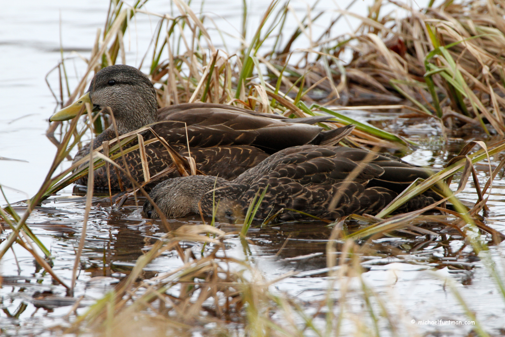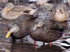 American Black duck pair (Anas rubripes). Drake has the solid yellow bill; hen has greenish mottled bill. American Black duck pair -- hen and drake (Anas rubripes). Hen is feeding.American Black duck pair (Anas rubripes). Drake has the solid yellow bill; hen has greenish mottled bill. American Black duck pair (Anas rubripes). Drake has the solid yellow bill; hen has greenish mottled bill. American Black duck pair -- hen and drake (Anas rubripes).American Black duck pair (Anas rubripes). Drake has the solid yellow bill; hen has greenish mottled bill. Black Duck Portraits, Groups