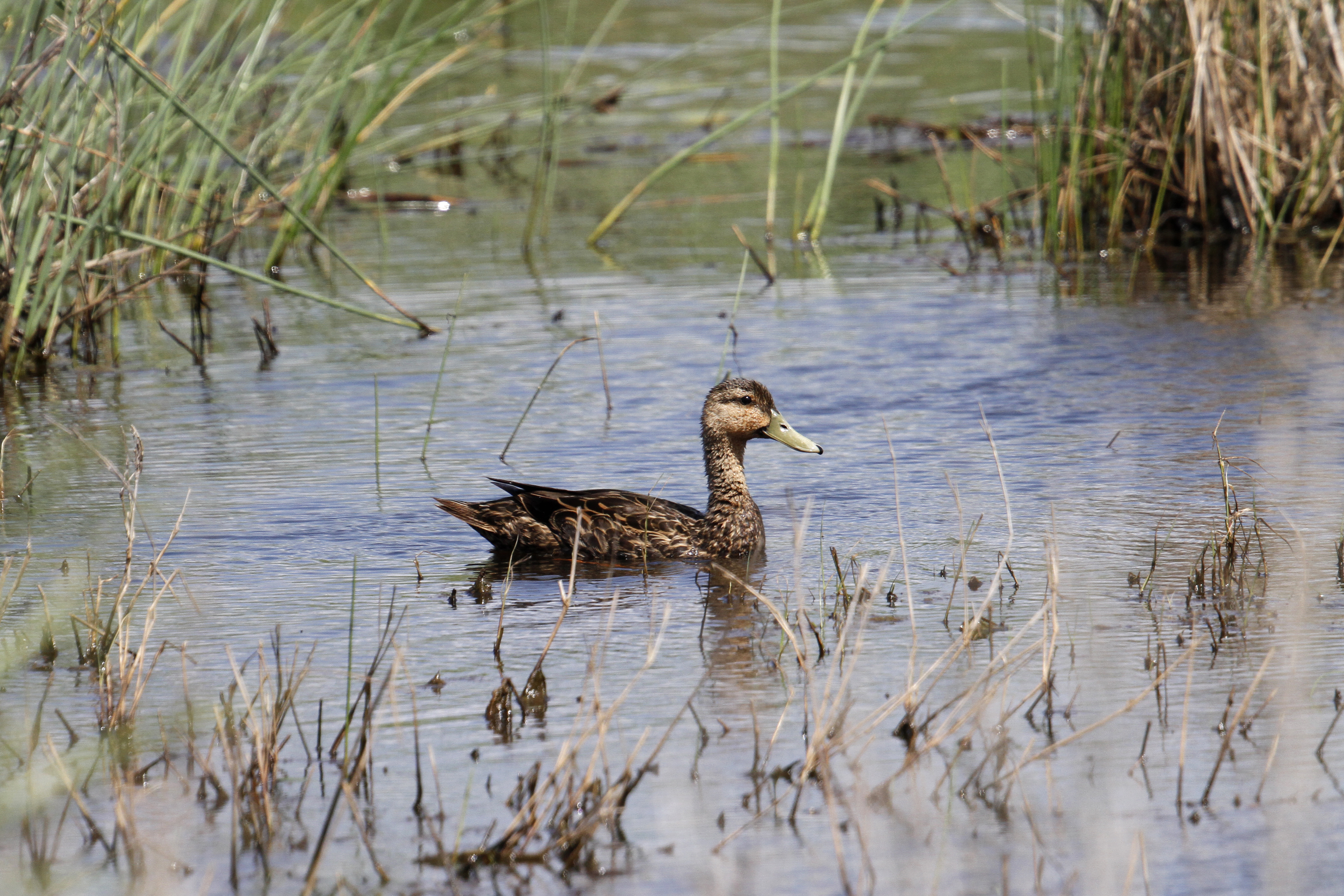 Mottled Duck drake (Anas fulvigula).Mottled Duck (Anas fulvigula). Pair -- hen is to the left.Mottled Duck (Anas fulvigula). Pair -- hen is to the right.Mottled Duck (Anas fulvigula). Pair -- hen is to the left. Mallards in FlightNorthern Pintail